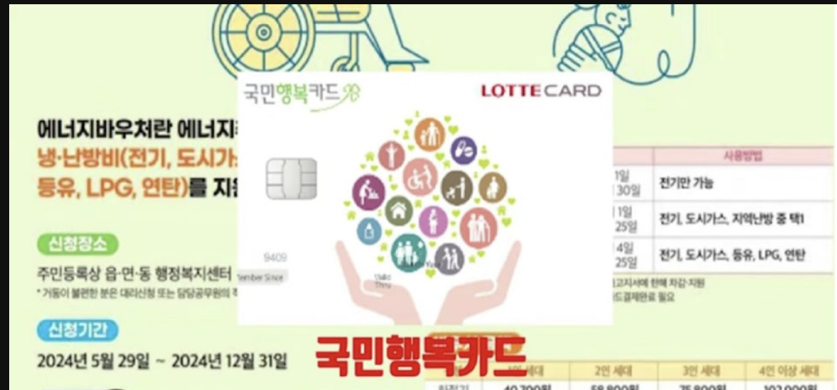 또한 연탄이나 등유, LPG처럼 실물 연료를 사용하는 가구는 ‘국민행복카드’에 바우처 금액이 충전되어