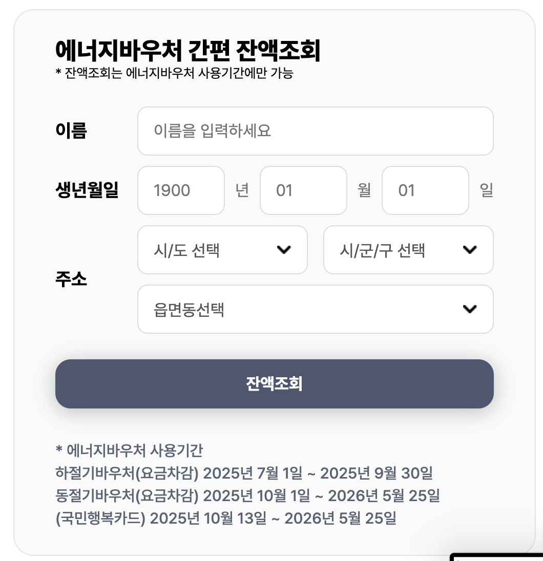 사용처나 잔액은 에너지바우처 공식 홈페이지 또는 콜센터(1600-3190)를 통해 언제든지 확인이 가능하며,