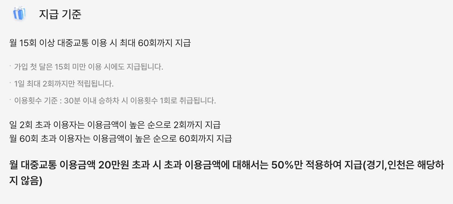 다만 승차 시 카드를 반드시 태그해야 환급 내역이 누적되므로, 현금이나 모바일 교통카드 사용은 인정되지 않음에 유의해야 합니다.