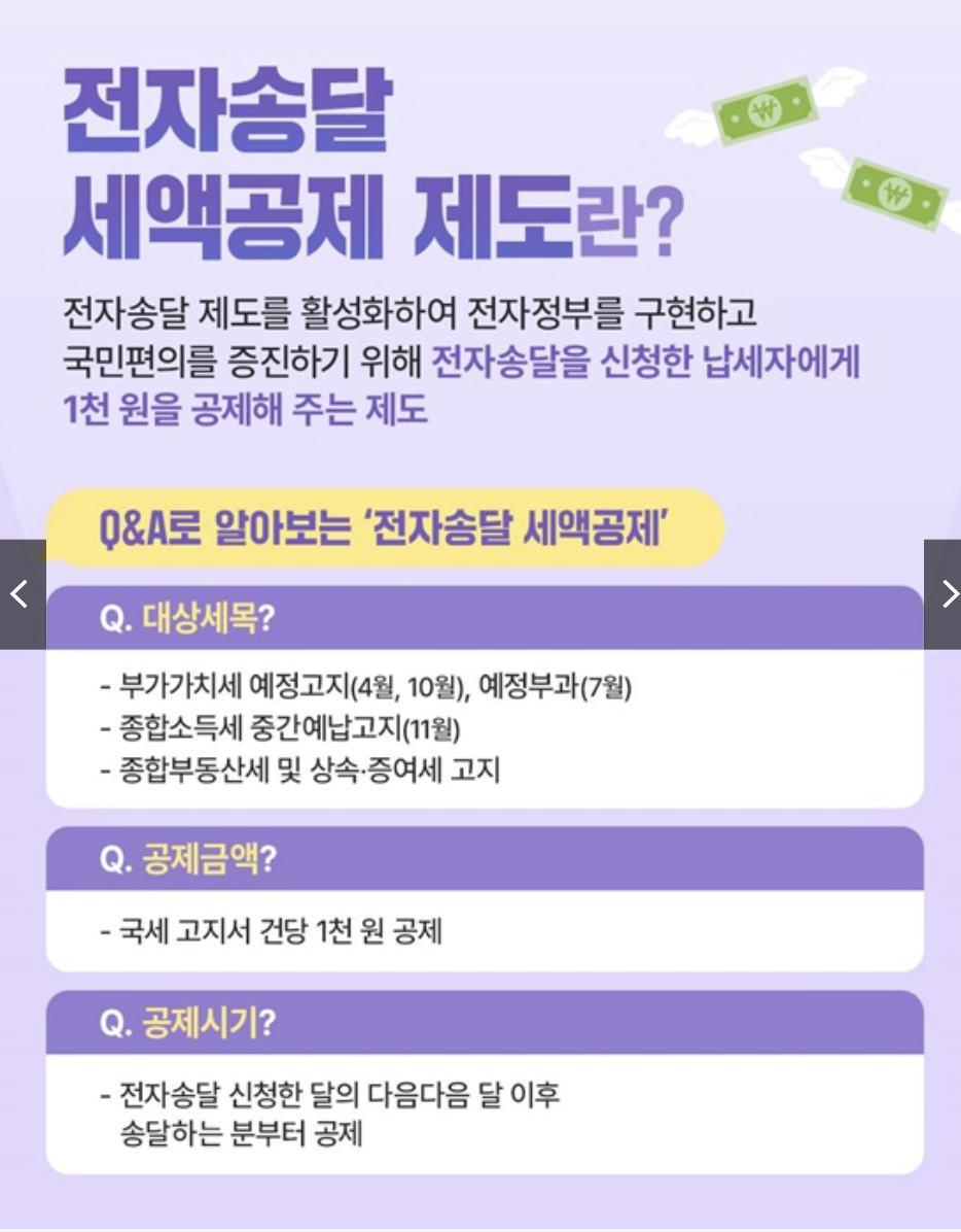 • 전자고지 세액공제 금액: 고지서 1건당 200원 세액공제