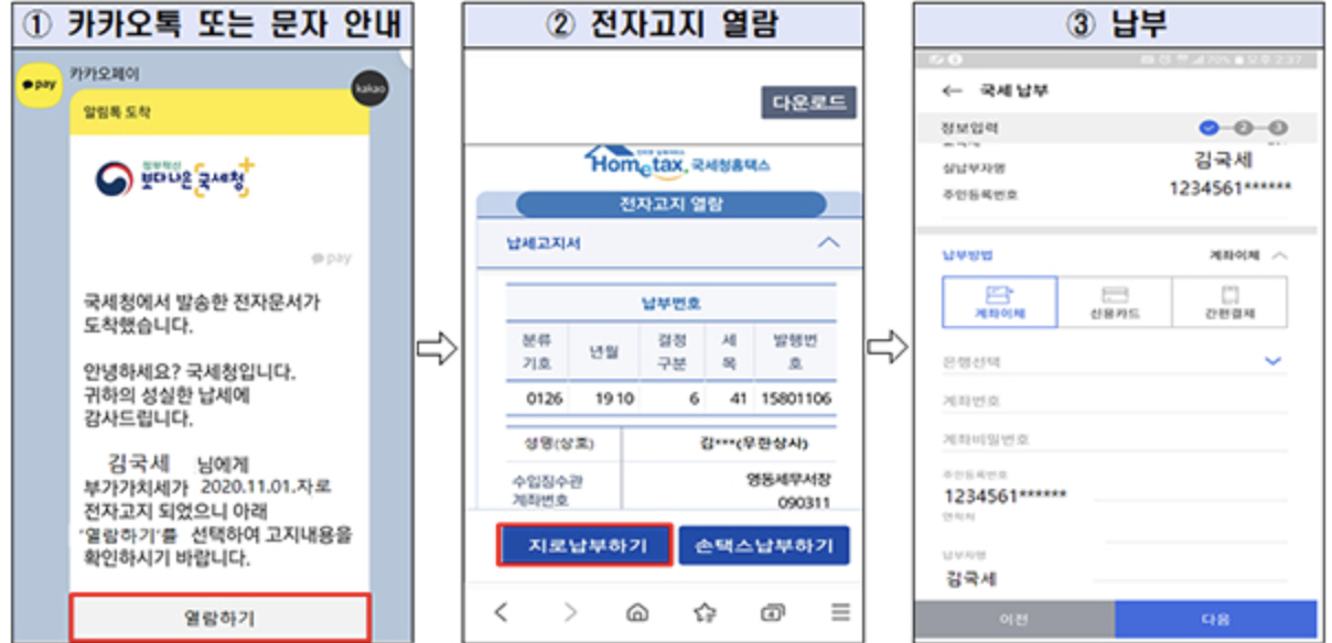 즉, 우리가 일반적으로 집으로 받던 세금 고지서를 카카오톡, 네이버 앱, 토스, 국민비서 알림 등에서